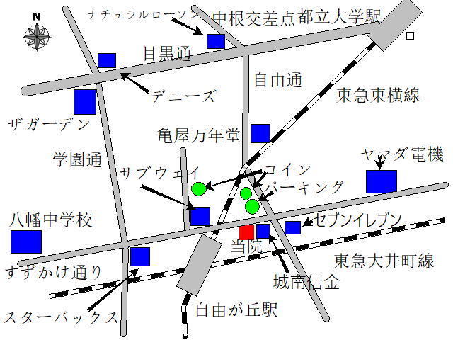当院へは東急東横線・大井町線自由が丘駅北口から徒歩3分でお越しいただけます。